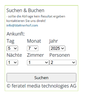 Für Fragen stehen wir Ihnen jederzeit gerne per Email ( info@blattnerhof.com ) oder telefonisch (+41 (0) 27 923 86 76) zur Verfügung!