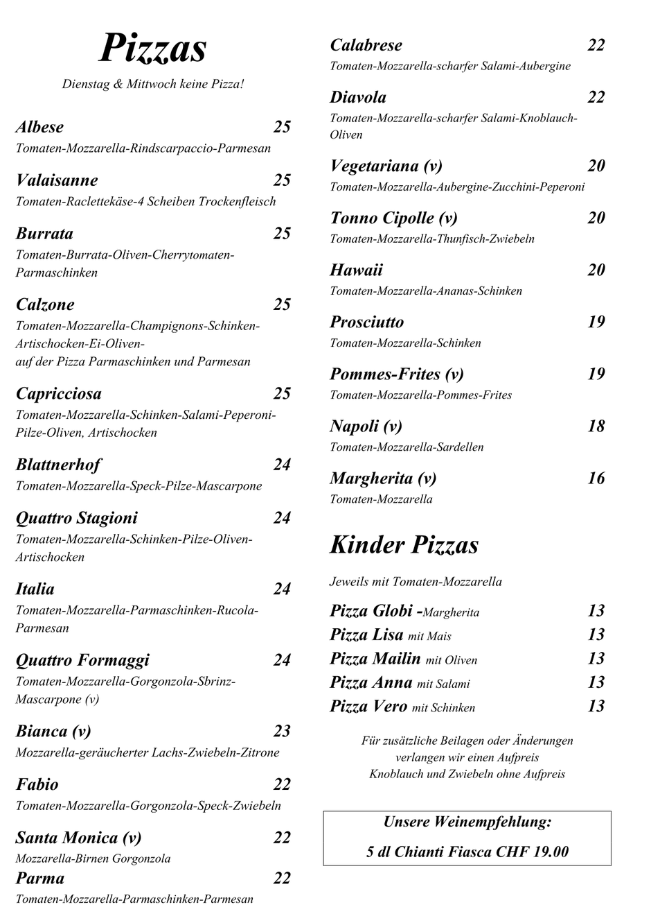 Donnerstag/Freitag/Samstag / Sonntag: 11:30 bis 13:30 und 18:00 bis 21:00 Uhr
