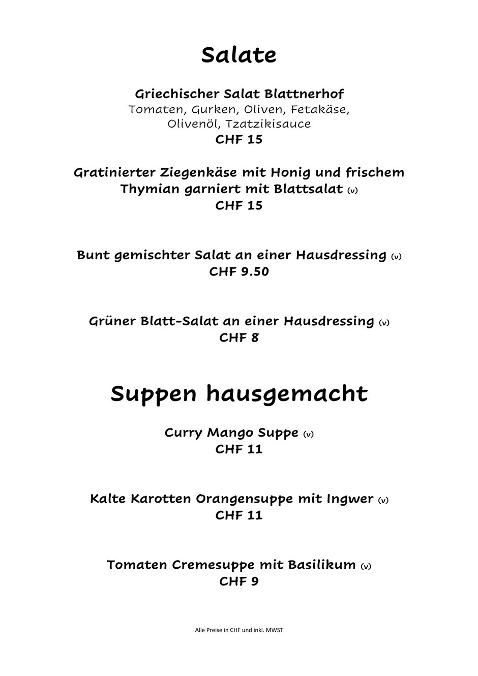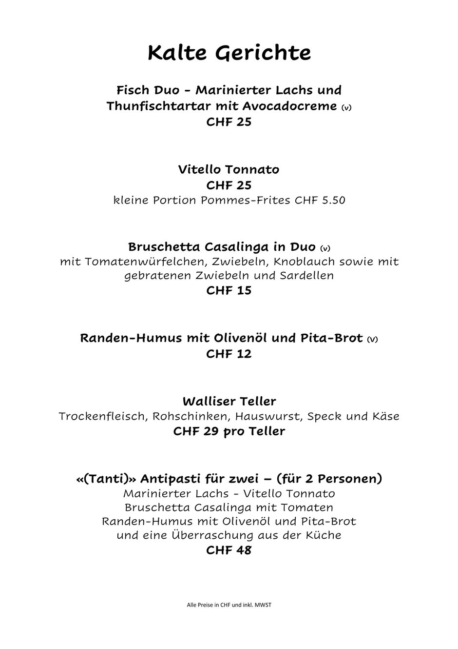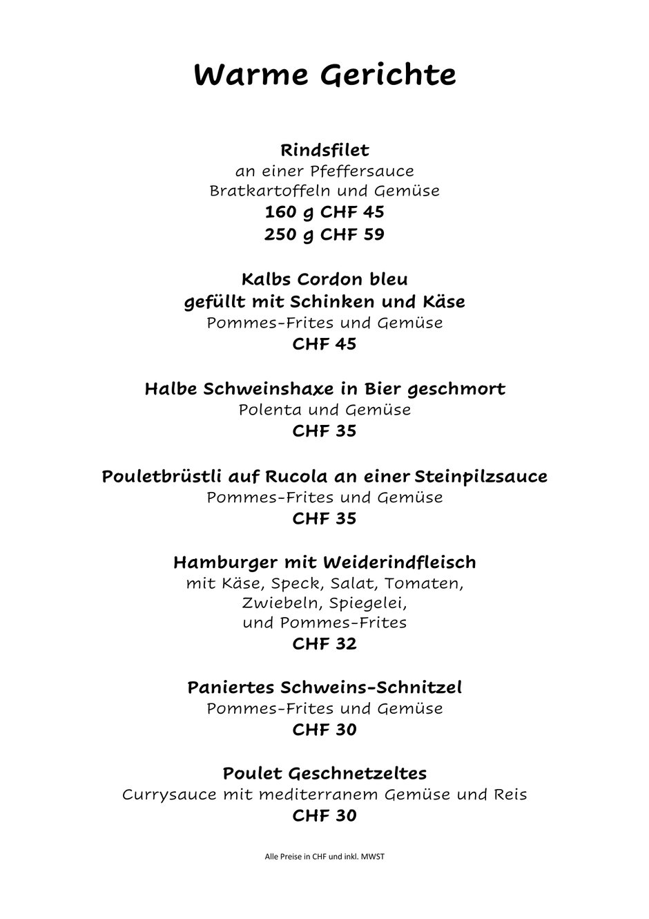 Warme Küche (Dienstag - Sonntag) :