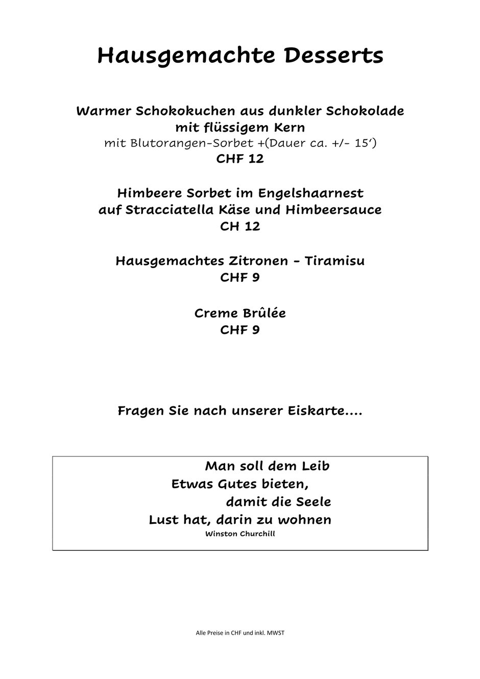 Jeweils am Montag bleibt unser Restaurant geschlossen